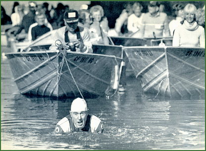 Jack LaLanne celebrates his 70th birthday in 1984 by towing 70 boats and