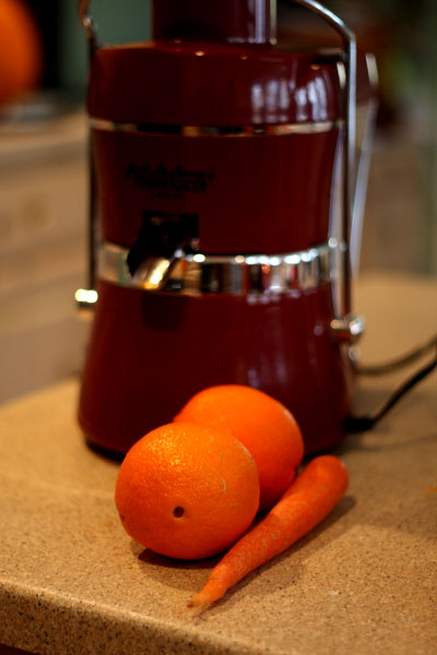 We have tried a variety of juice combinations , but my favorite is a simple orange juice with on carrot. I figure it will be good for my eyesight eventually.