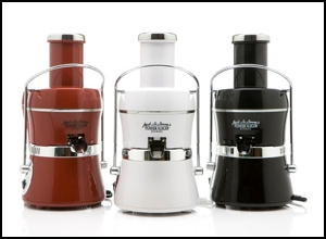 Hurom Slow Juicer. This works by “chewing” the produce instead of chopping and separating juice from solids by centrifugal force. It’s slow-going but can handle tougher items such as nuts and soybeans. Model No. HU-100, $359 at www.amazon.com.